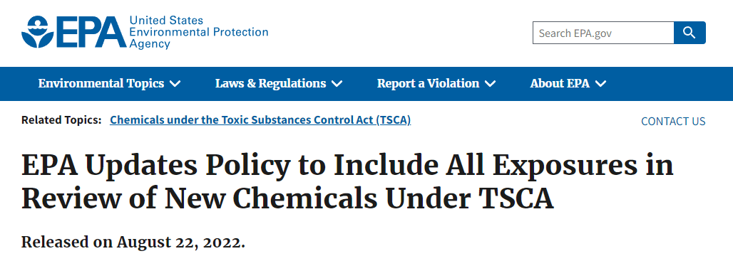 出于該目的和需求,EPA于2022年8月22日公告對其政策進行了更新,即在根據TSCA評估新化學物質的健康和環境風險時停止使用暴露建模閾值。