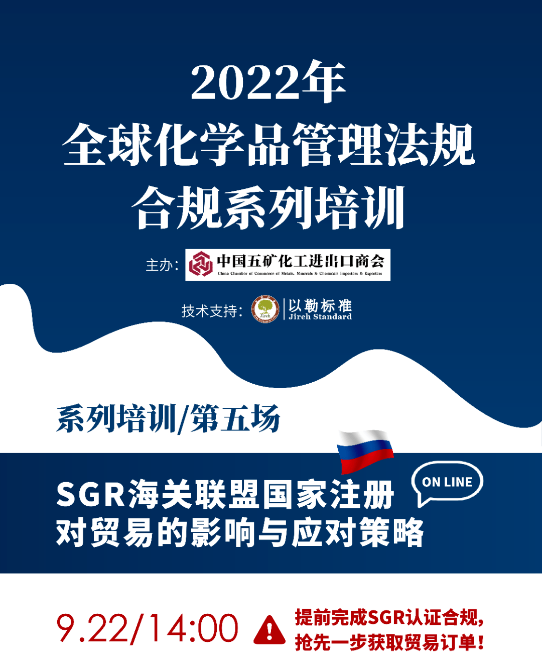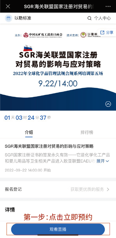 報名倒計時!明天下午2點,以勒標準聯合五礦商會共同舉辦的全球化學品管理系列法規的第五場——SGR海關聯盟國家注冊對貿易的影響與應對策略正式開講!