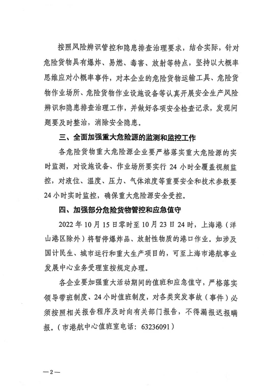 根據上海市交通委員會相關文件要求,自10月15日零時起至10月23日24時。上海港(洋山港除外)將暫停爆炸品、放射性物質的港口作業。