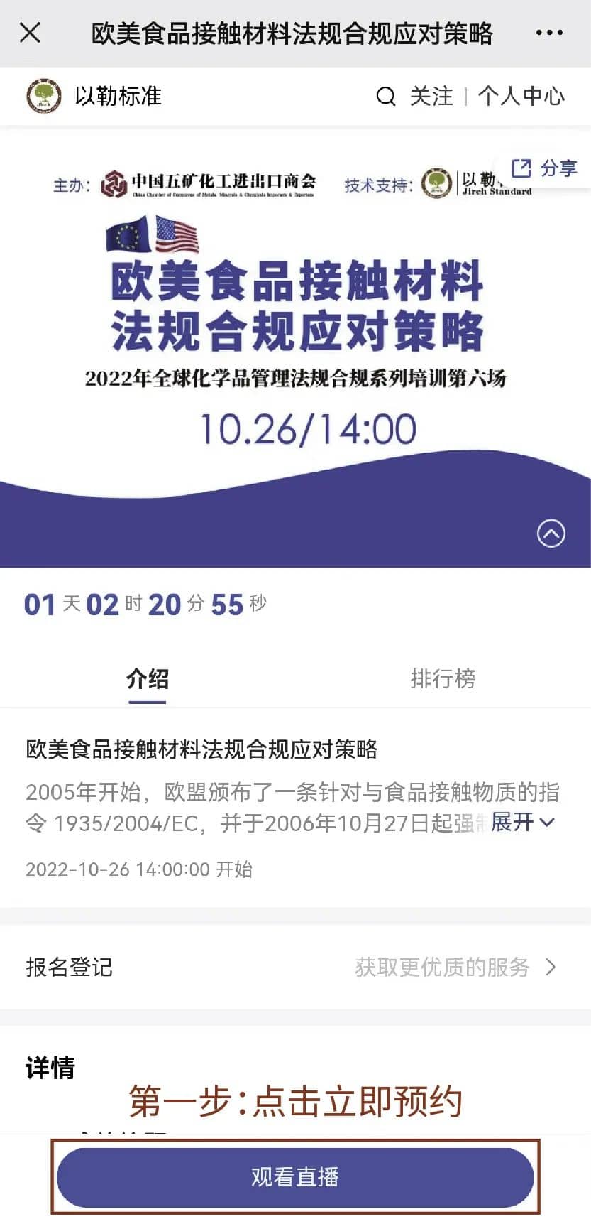 報名倒計時最后24h!明日下午14時,以勒標準聯合五礦商會舉辦的歐美食品接觸材料法規合規及應對策略正式開講