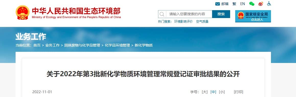 ▌附表: 2022年第3批新化學(xué)物質(zhì)環(huán)境管理常規(guī)登記證批準(zhǔn)情況表