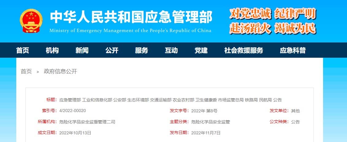 本文內容來源:應急管理部,由以勒標準翻譯整理。以勒標準尊重知識產權,如轉載內容涉及版權問題,煩請聯系我們及時處理。翻譯/整理不易,凡轉載或引用本網站內容,請注明來源:杭州以勒標準,感謝您的支持!更多法規資訊實時跟蹤,可搜索“以勒標準”官方微信公眾號,獲取第一手法規資訊,掌握最佳貿易時機!
