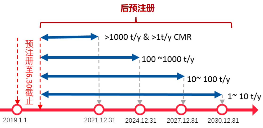 2019年1月1日正式實施,1000噸以上的建議選擇正式注冊,1-1000噸可選擇預(后)注冊或正式注冊。
