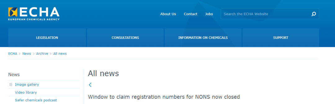 官網原文鏈接:https://www.echa.europa.eu/-/window-to-claim-registration-numbers-for-nons-now-closed