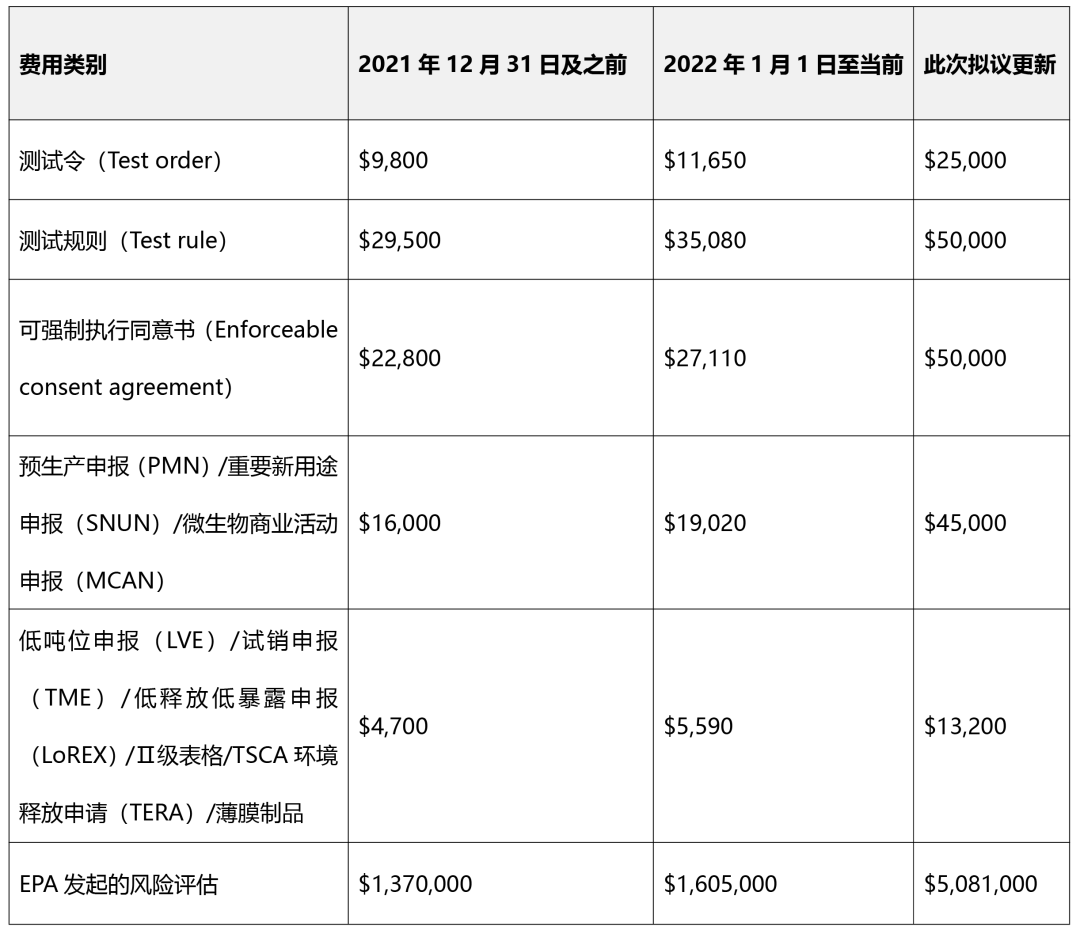 ▌TSCA行政費(fèi)金額的擬議變更