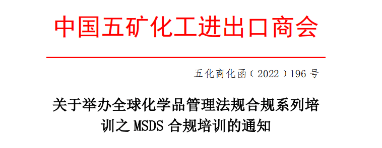 以勒聯合中國五礦化工進出口商會共同舉辦2022年全球化學品管理法規合規系列培訓計劃第七場——全球化學品安全技術說明書MSDS最新合規要求及應對建議。