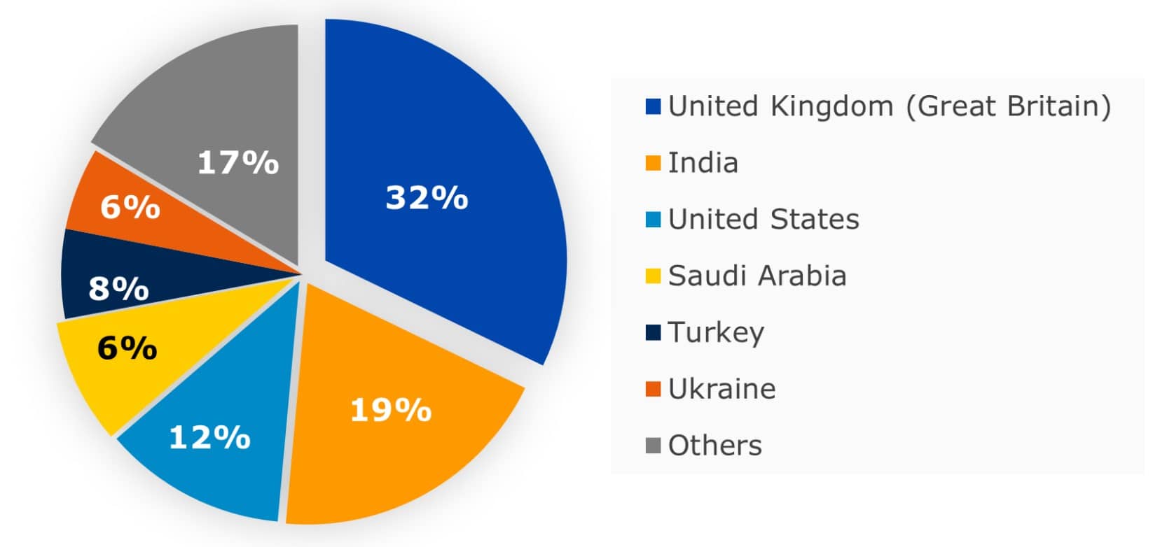 作為一個非歐盟國家,英國也對歐盟的進口增長做出了相當大的貢獻。2021年進口到歐盟的PIC化學品總量為883 120噸,比2020年增加120%。大約284 000噸來自英國。
