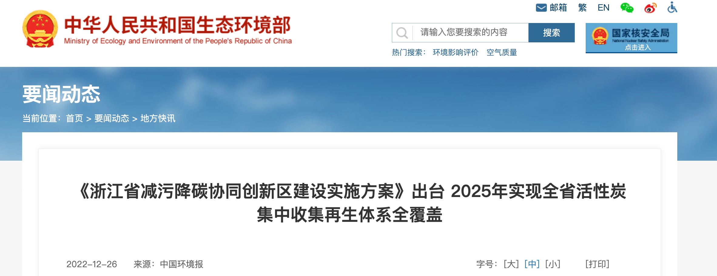 《浙江省減污降碳協同創新區建設實施方案》(以下簡稱《方案》)日前發布,明確提出到2025年實現全省活性炭集中收集再生體系全覆蓋,并從加強源頭防控、推進大氣污染防治協同控制等8個方面作出工作部署。