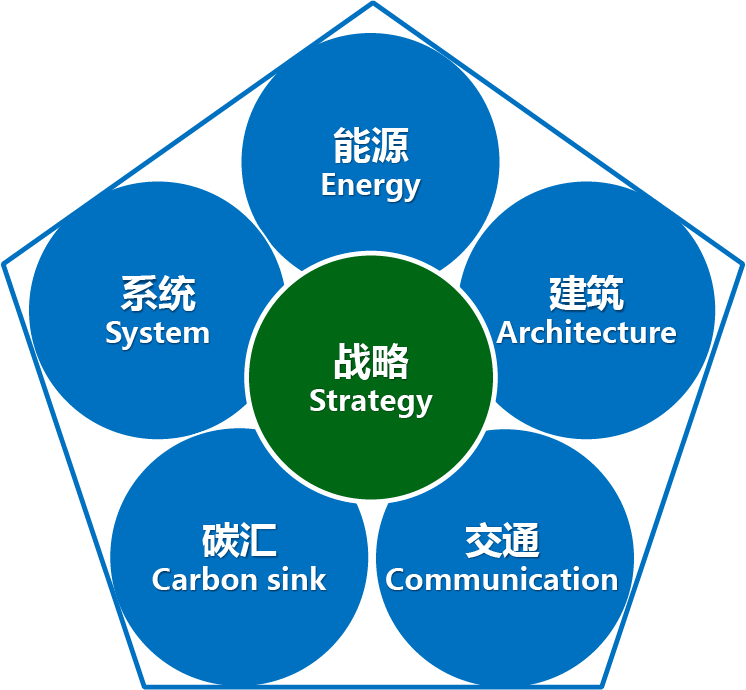 該方案從零碳園區(qū)戰(zhàn)略(Strategy)、能源(Energy)、建筑(Architecture)、交通(Communication)、碳匯(Carbon sink)及系統(tǒng)(System)等六個(gè)方面,共同構(gòu)建零碳園區(qū),同時(shí)也被簡稱為零碳園區(qū)SEACCS模型。