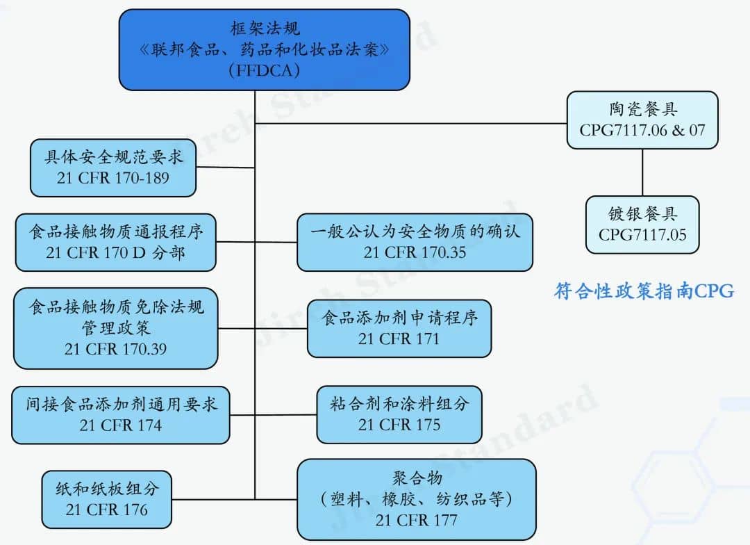 在包裝、貯存或加工過程中與食品接觸,但不打算直接添加到食品中、成為食品成分或對食品產生技術影響。21CFR提到包括粘合劑和涂料成分(第175部分)、紙張和紙板成分(第176部分)、聚合物(第177部分)以及佐劑和生產輔助劑(第178部分)。